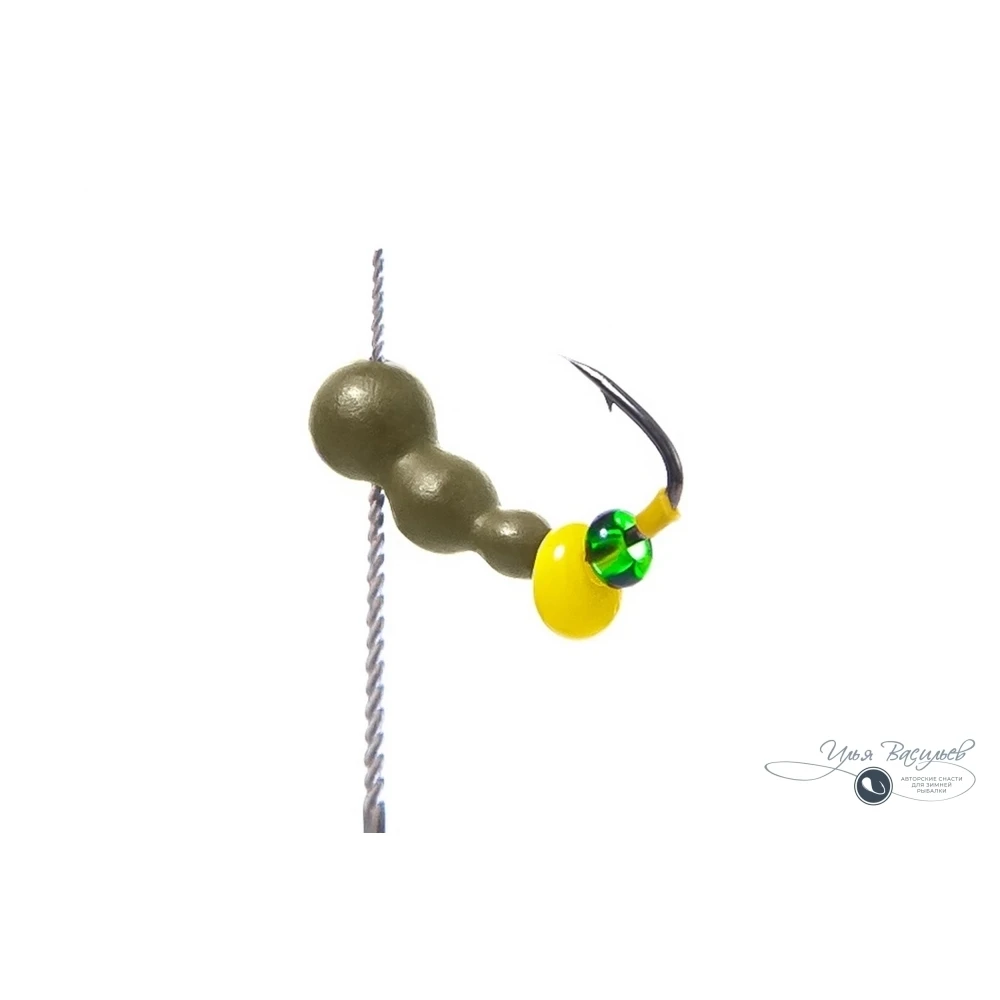 Мормышка МУРАВЕЙ трехголовый КЛАССИЧЕСКИЙ 0,60г оливковый (желтая бусина)
