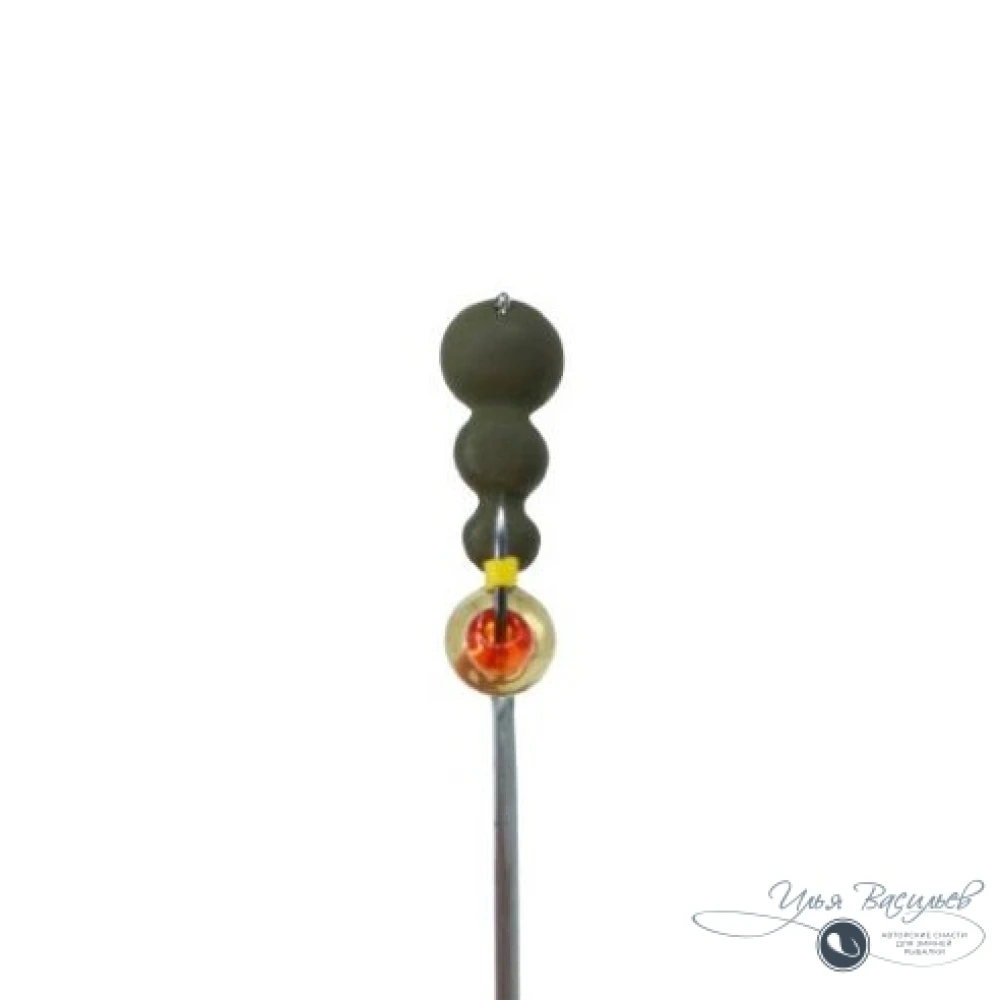 Мормышка МУРАВЕЙ трехголовый ОБРАТНЫЙ 0,63г оливковый (золотая бусина)