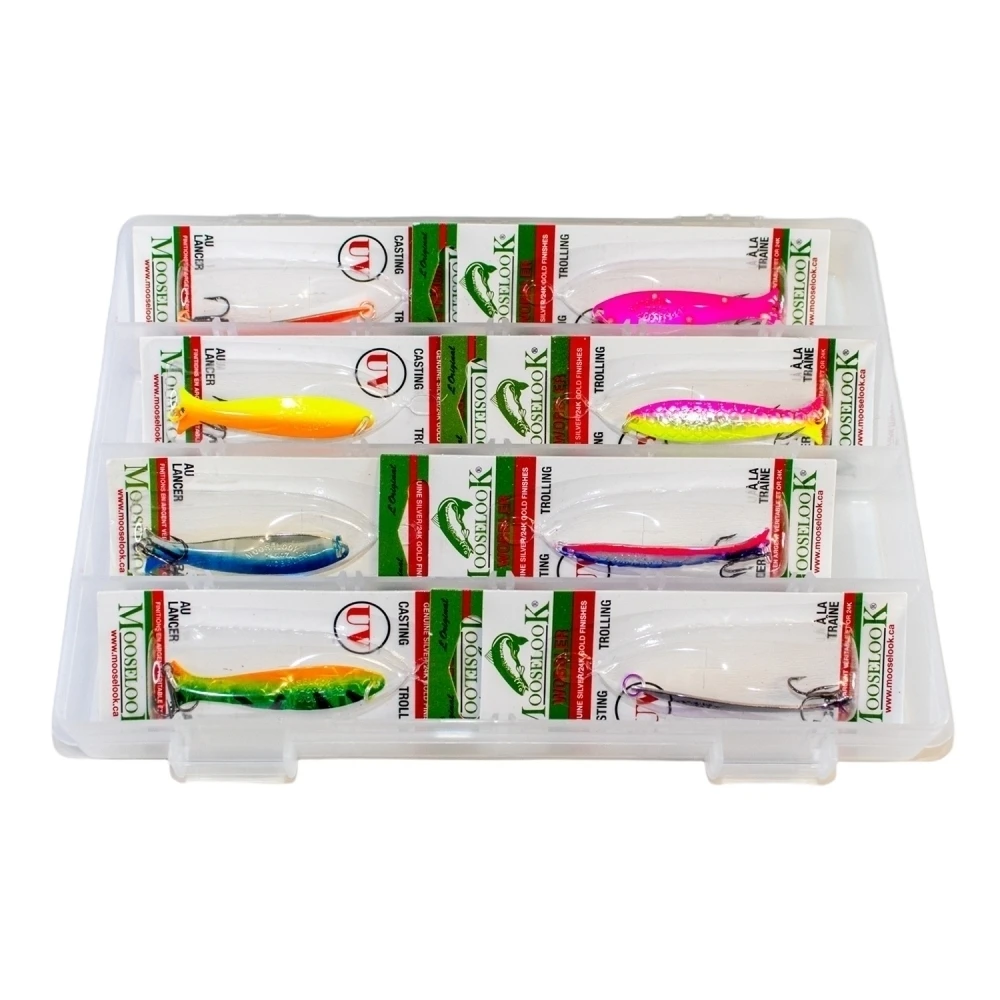 Набор состоит из восьми канадских блесен Mooselook Wobbler 16000 весом 4,7г - 16000 (16007OR, 16054PWD, 16053YO, 16046WTML, 16011SBLU, 16047CDIC, 16062FT, 16059BP).