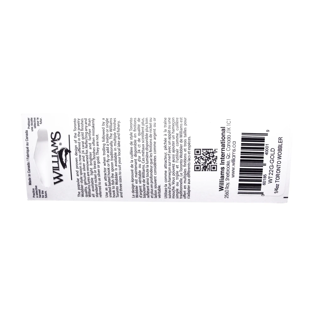 Блесна Williams Toronto Wobbler WT22G 8г, колеблющаяся, масса 8 г, длина 57 мм, цвет G (Золото).