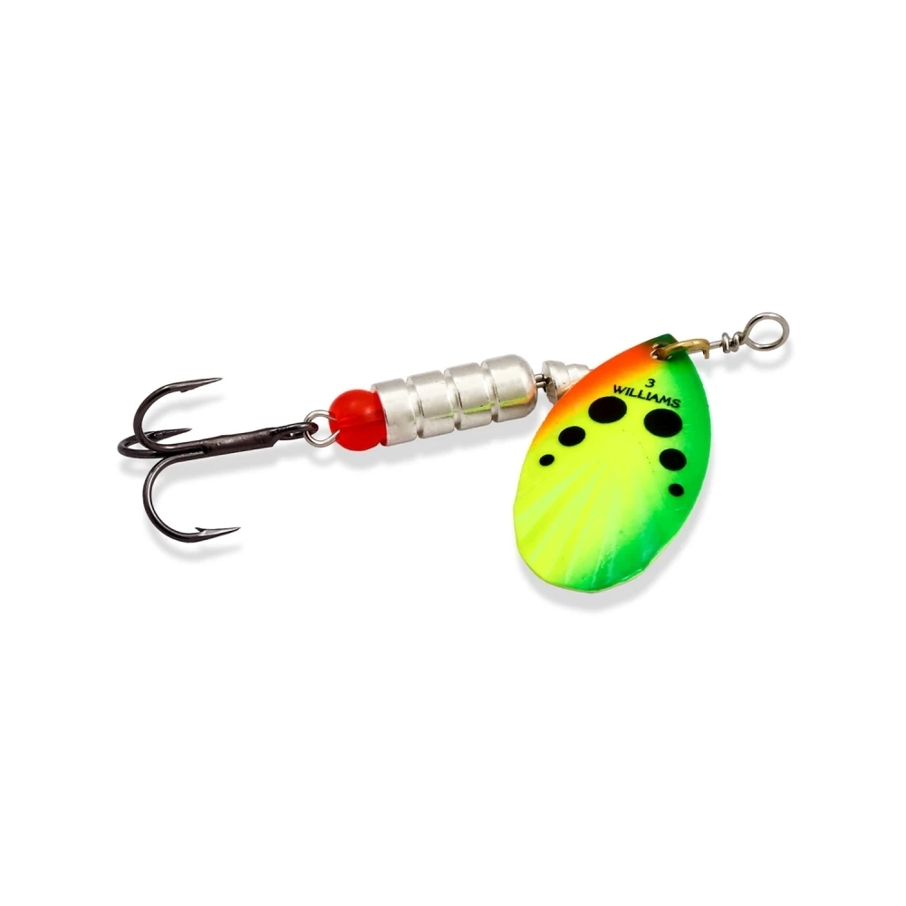 Вращающаяся блесна для всех видов ловли Williams VorteX V5FT 14.2г цвета FT (Зеленый/Желтый/Красный/Черный), размер 48 мм.