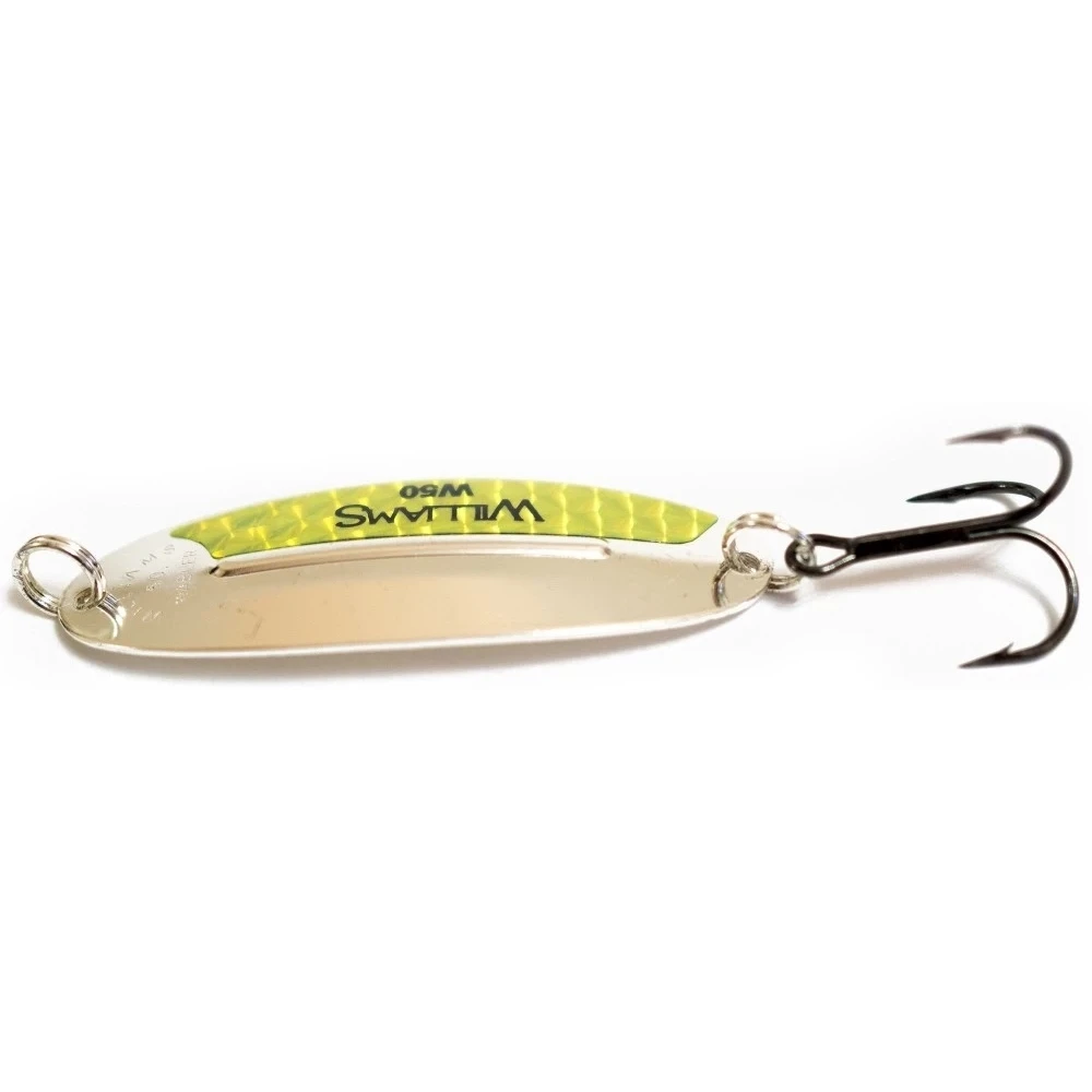 Колеблющаяся уловистая блесна Williams Wabler W50C 14г, масса 14 г, длина 67 мм, цвет C (Желтый/Голография/Серебро).