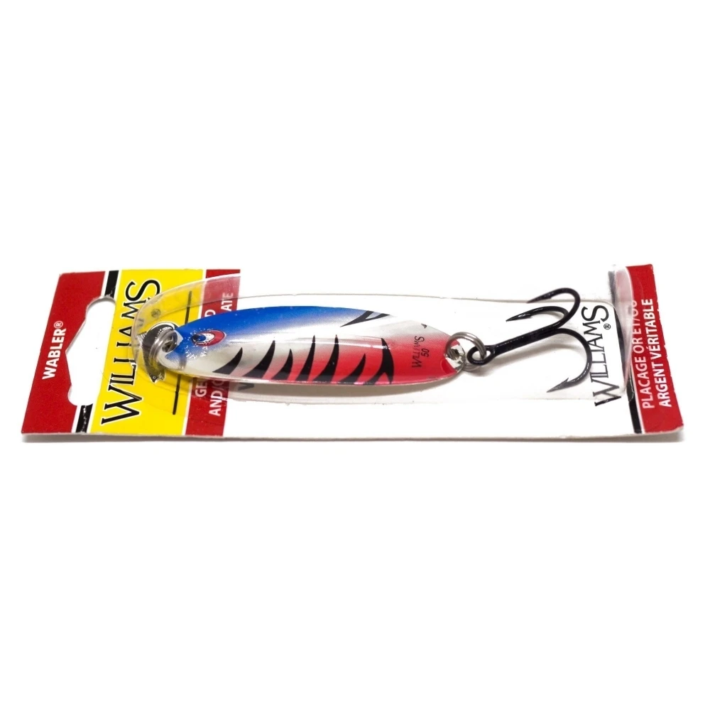 Колеблющаяся уловистая блесна Williams Wabler W50RBT 14г, масса 14 г, длина 67 мм, цвет RBT (Синий/Красный/Серебро).